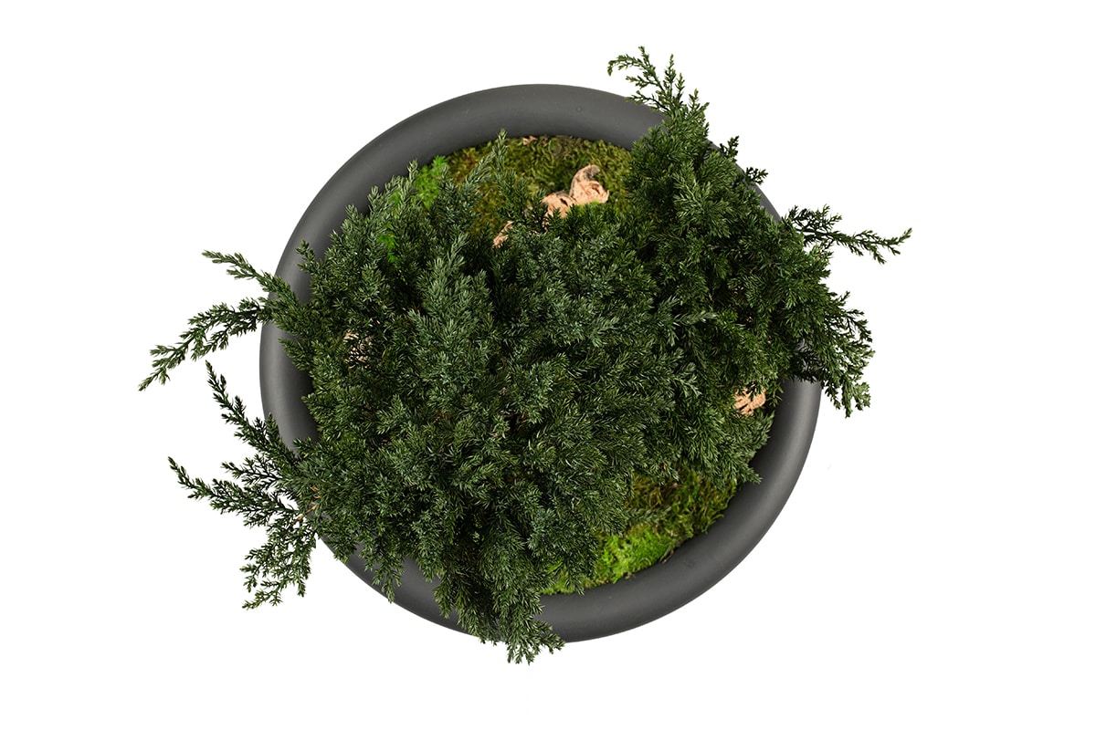 Varianti vaso:Vaso Ceramica compreso, oppure con vaso Bowl (prezzo a parte) polietilene nei colori grafite, bronzo, bianco. per questa versione,paesaggio con muschio e corteccia di sughero comprsso.