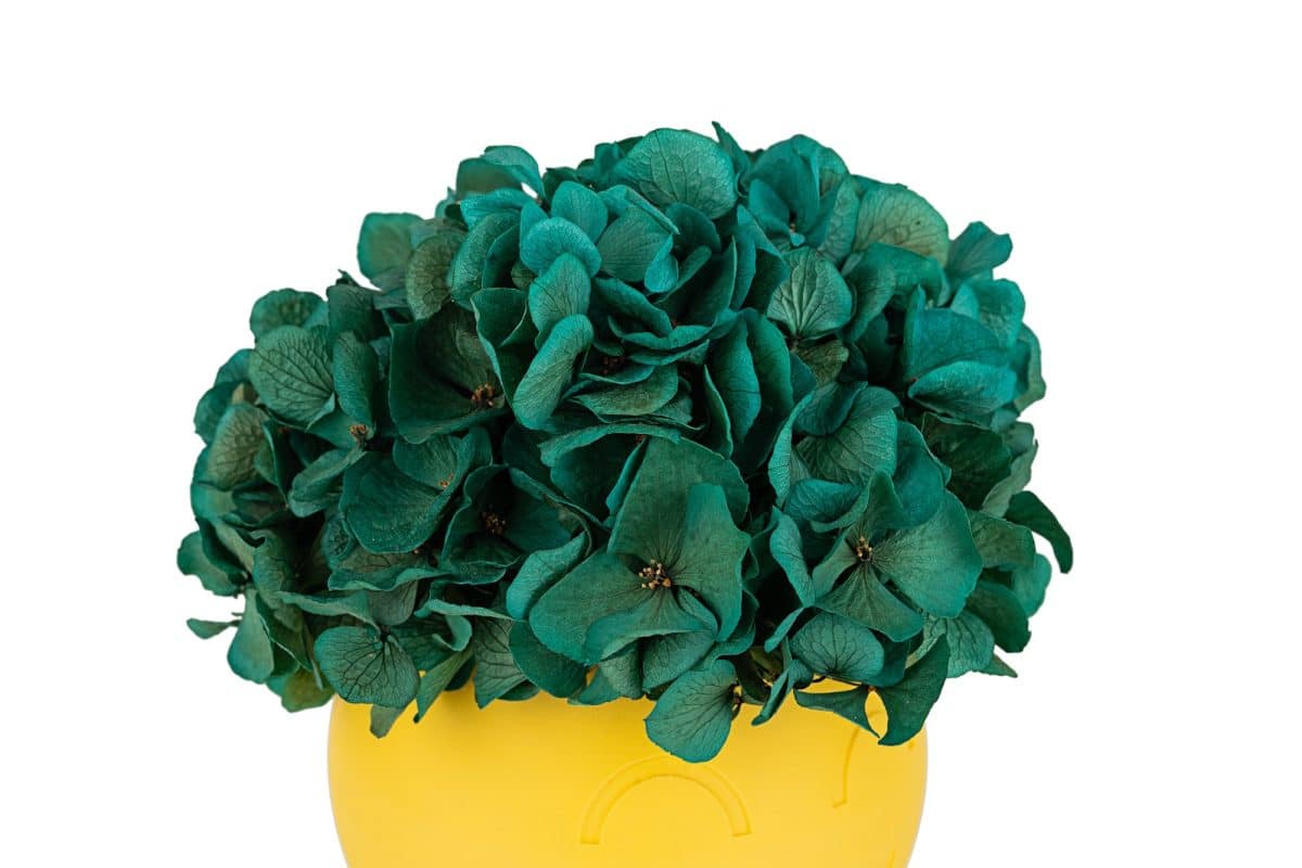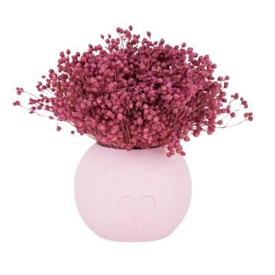 Vasetto sferico realizzato in fibra di mais ecologica, decorato con fiori e vegetali stabilizzati a scelta. Ideale per ristoranti e cafè. Piano noleggio disponibile. Ogni vasetto ha incisa una diversa espressione che li rende articoli divertenti, dal look pop informale.