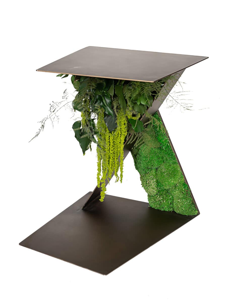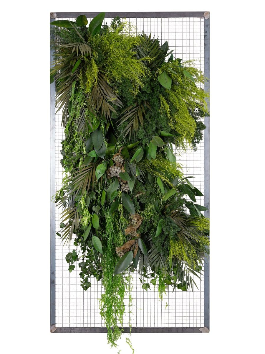 This innovative creation is made out of Raw Iron and is meant to be hung on the ceiling. It is decorated with hanging Forest-type preserved plants. It is a natural- looking and airy decorative element which is suitable for both private or business spaces. The SINGAPORE ceiling decoration matches perfectly with the Metal Rust Green Forest frameworks, with the Tokyo standing lamp and with the Seoul coffee-table.