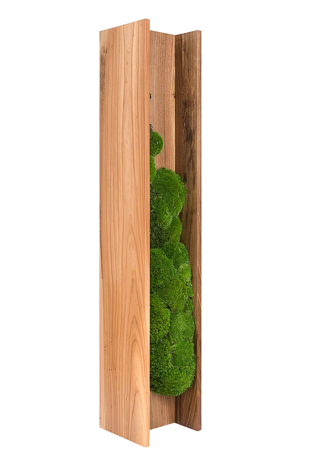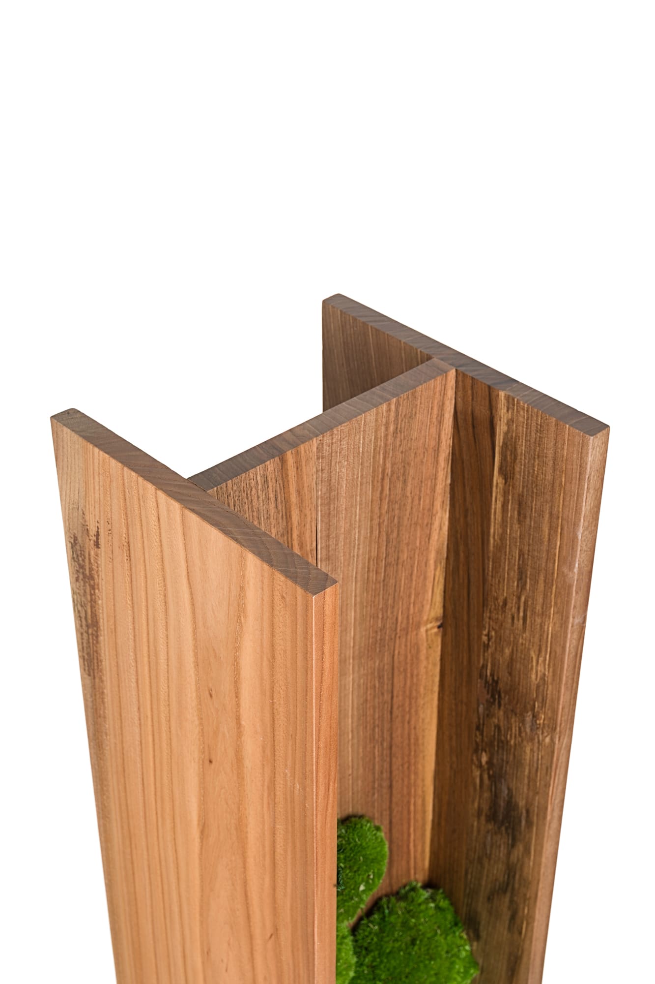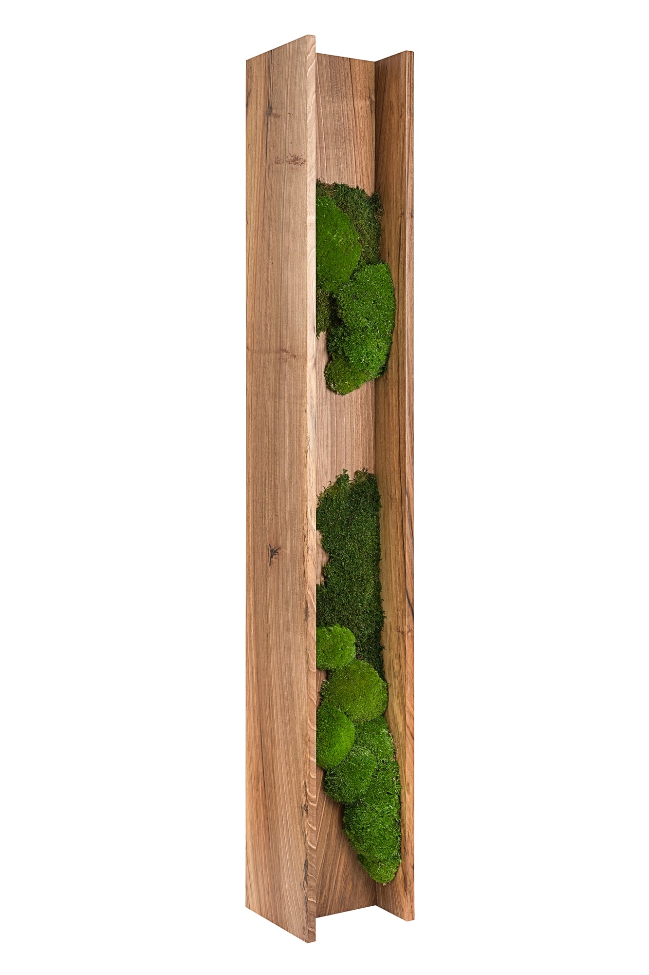 Le nostre Putrelle decorative sono in meraviglioso legno massello levigato, con finitura opaca ad olio naturale. Un complemento d’arredo non convenzionale, che rivisita un elemento cardine dell’architettura. Ogni Putrella LinfaDecor è una decorazione totemica autoportante che può essere scelta in Rovere, Olmo o Noce, a seconda di quale essenza lignea si addice di più ai tuoi ambienti privati o business. Ogni elemento è creato a mano e decorato con Muschio Alpino e Muschio Palla stabilizzati.
