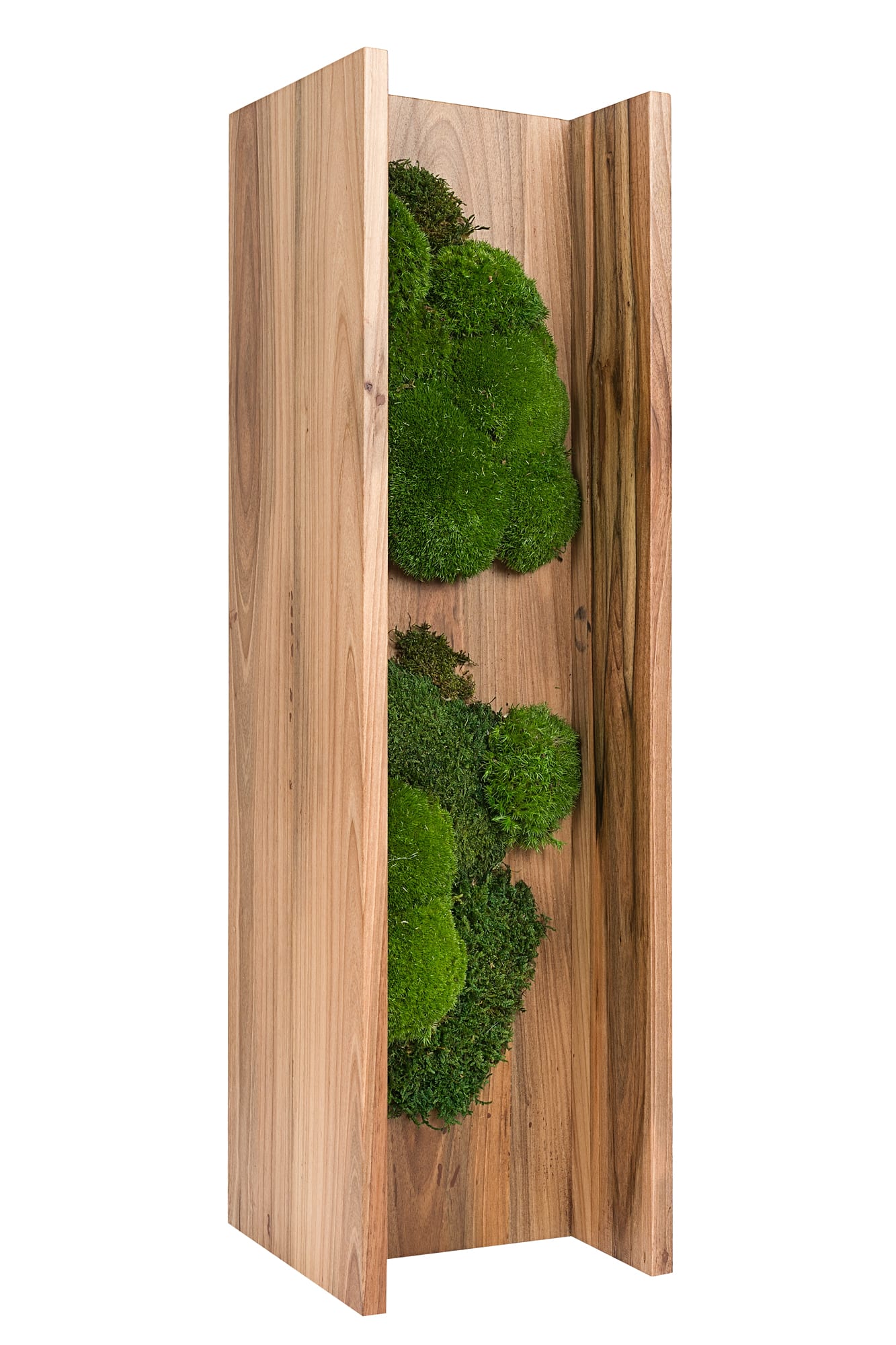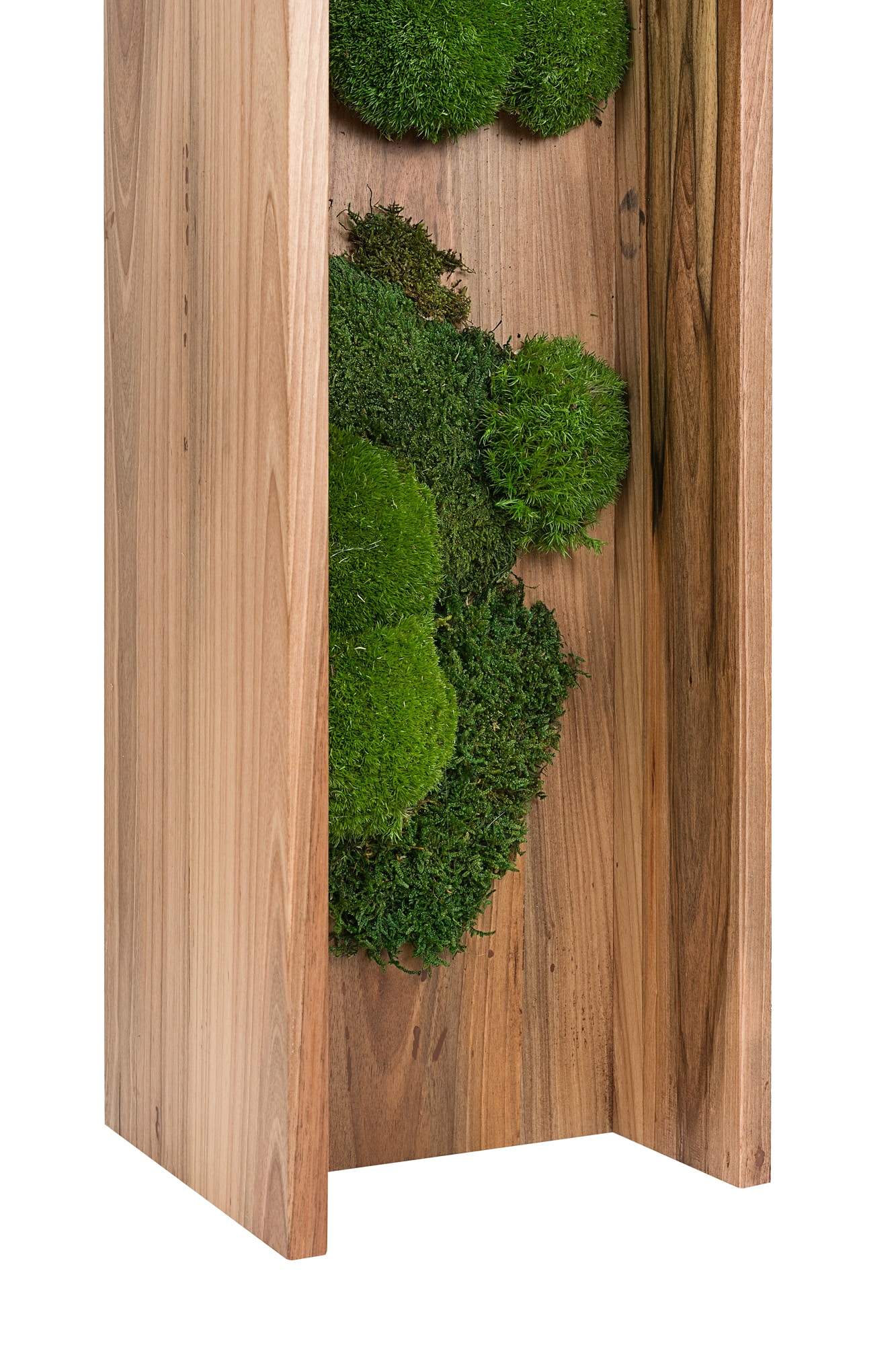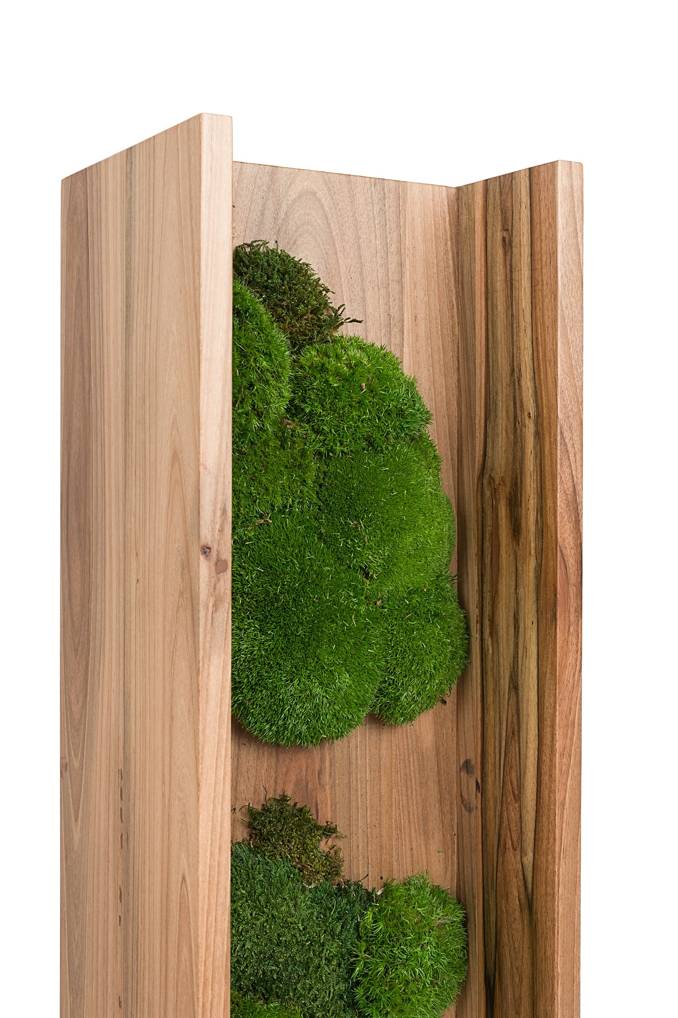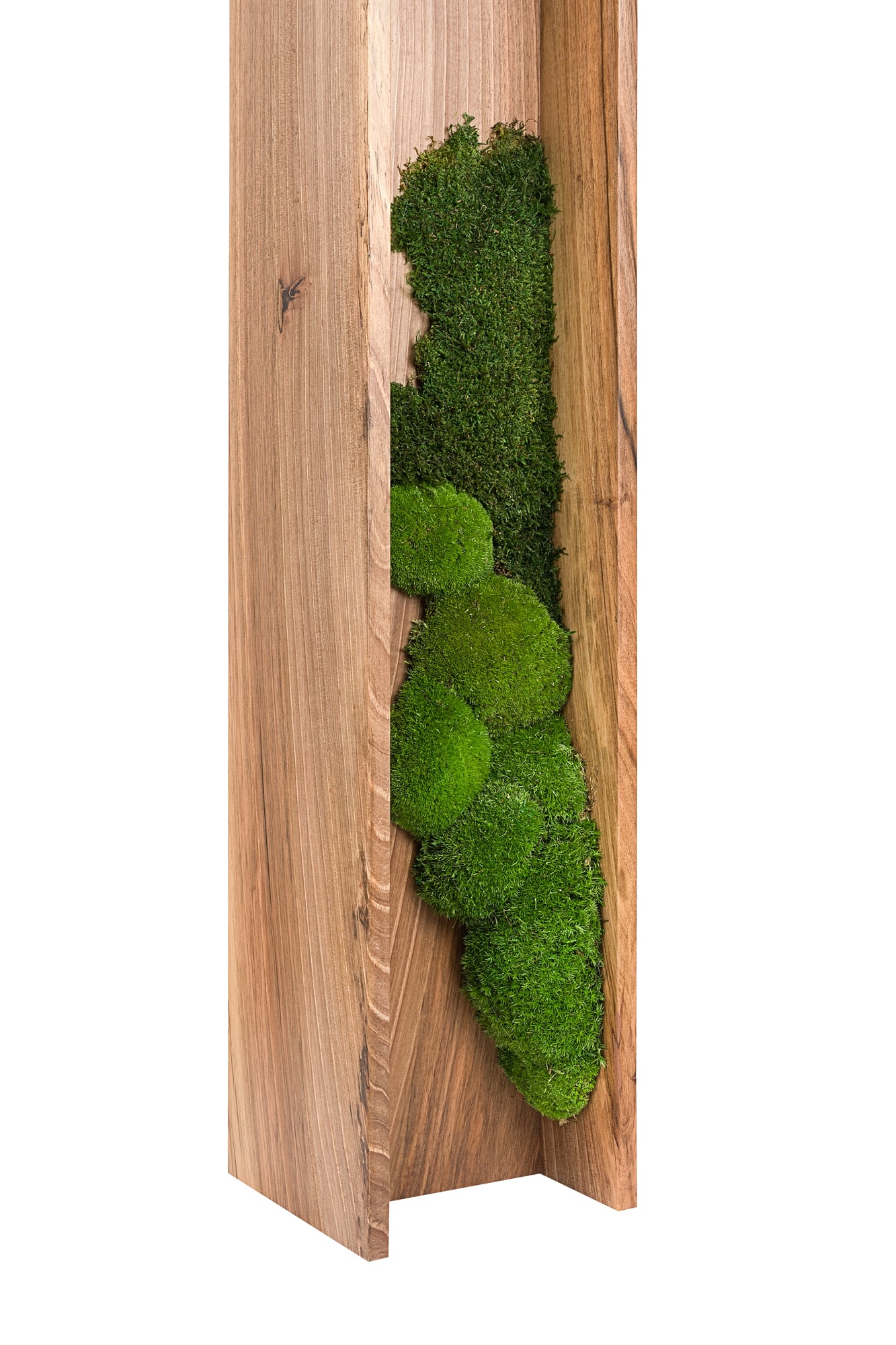 Le nostre Putrelle decorative sono in meraviglioso legno massello levigato, con finitura opaca ad olio naturale. Un complemento d’arredo non convenzionale, che rivisita un elemento cardine dell’architettura. Ogni Putrella LinfaDecor è una decorazione totemica autoportante che può essere scelta in Rovere, Olmo o Noce, a seconda di quale essenza lignea si addice di più ai tuoi ambienti privati o business. Ogni elemento è creato a mano e decorato con Muschio Alpino e Muschio Palla stabilizzati.
