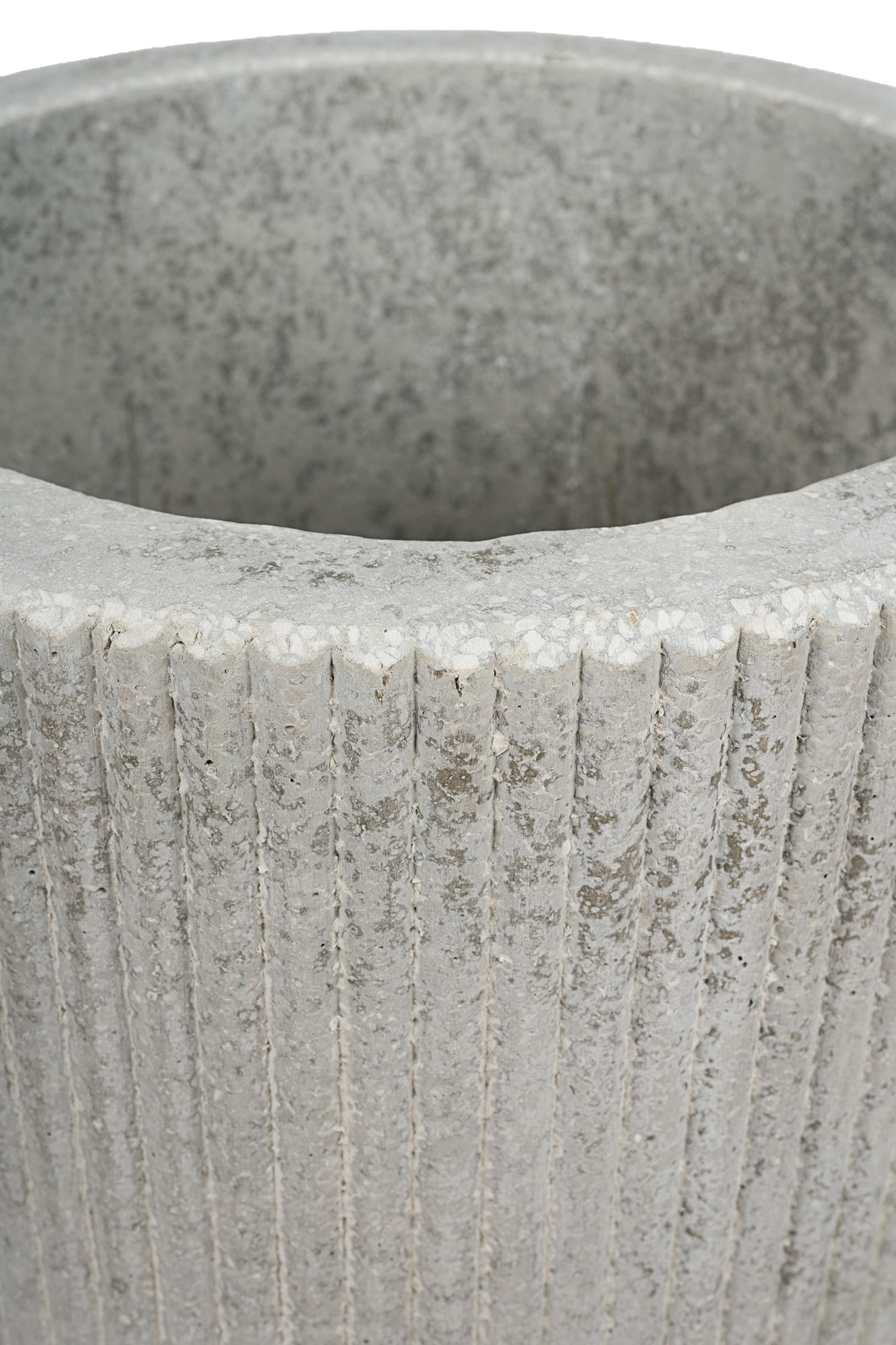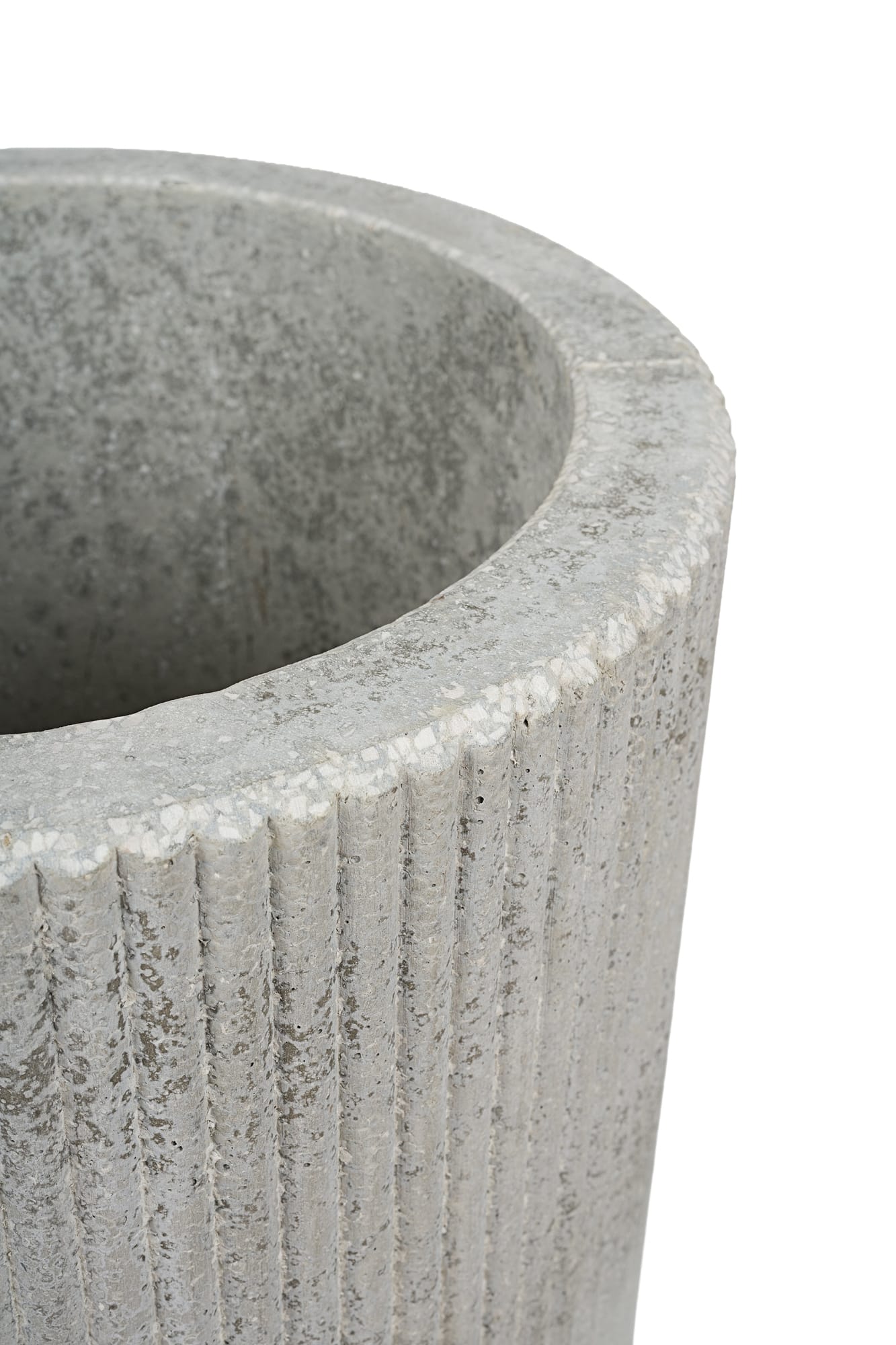 I vasi Atena sono realizzati in cemento industriale, un materiale che assicura resistenza alle intemperie e allo smog e conferisce un peso notevole, garantendo stabilità anche su terrazze o cortili esposti al vento. Ogni vaso Atena può essere realizzato su misura. La finitura cannettata ricorda le scanalature delle colonne ioniche, aggiungendo un tocco di eleganza classica a un materiale moderno.