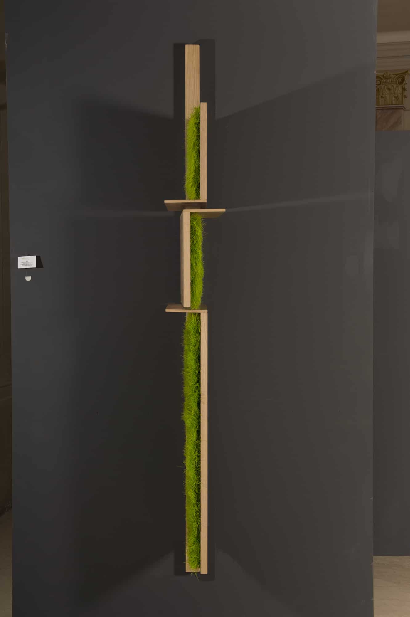 All’interno, sullo schienale di fondo, viene fissato il prato. Retro in finitura rovere.